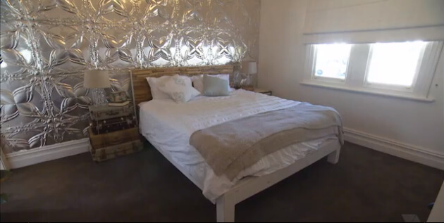 Adam and Lisa are the ones to watch in this competition and did a pretty good job in Bomber and Mel’s bedroom. I have to say, though, that the wall was a little too much for the space – and would have looked better on a smaller scale. Those suitcase bedside tables, however, were an absolute standout and I loved every bit of them.