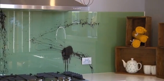 Now I do love Maddi and Lloyd, but what on Earth were they thinking with the splashback in Bomber and Mel’s kitchen? (click here to check out some real spashback inspiration). And this is coming from someone who adores street art and graffiti, too. They really missed the mark with this one, but I do give them props for that dining table. Totally not my style but what a clever idea!